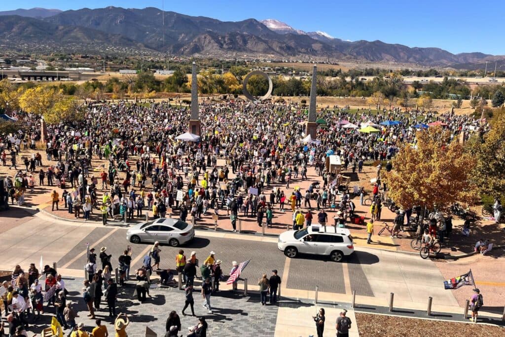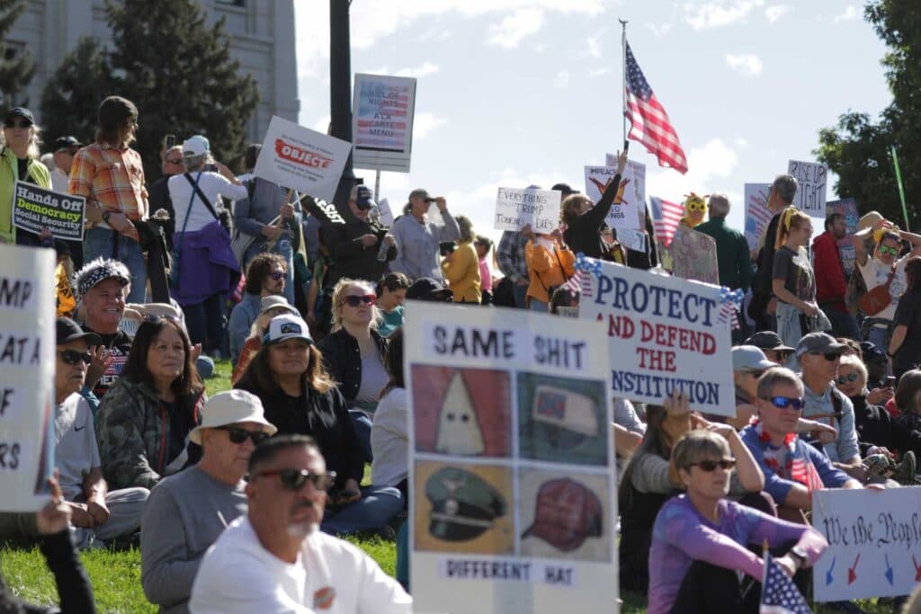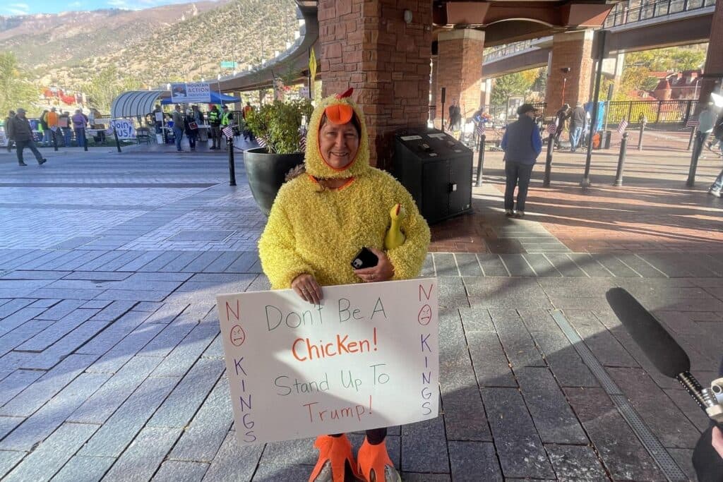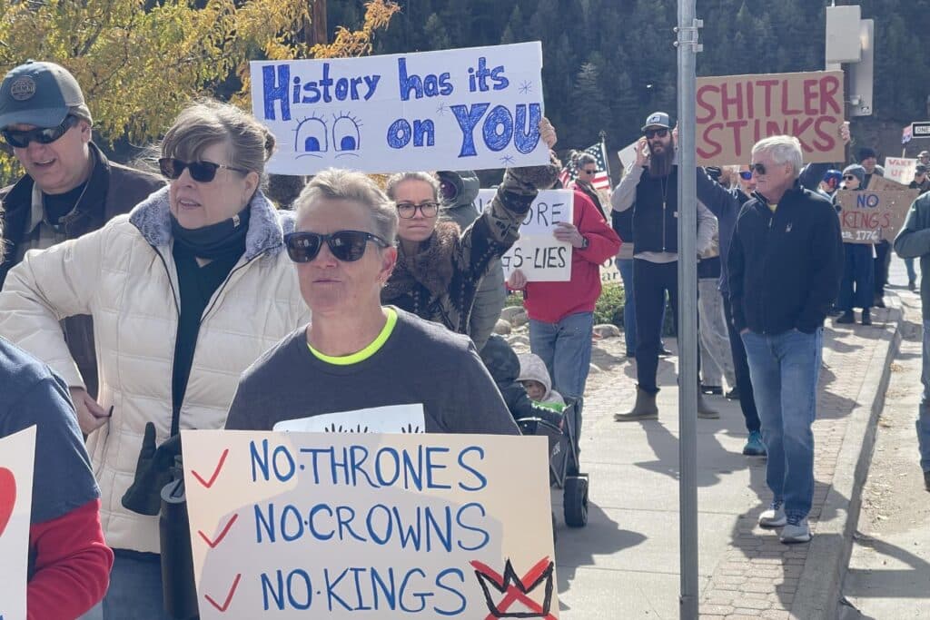 Thousands of protesters gathered across the state on Saturday in opposition to the Trump administration's policies. From Grand Junction to the eastern plains, crowds gathered along street corners and in parks, holding “No Kings” signs and chanting.