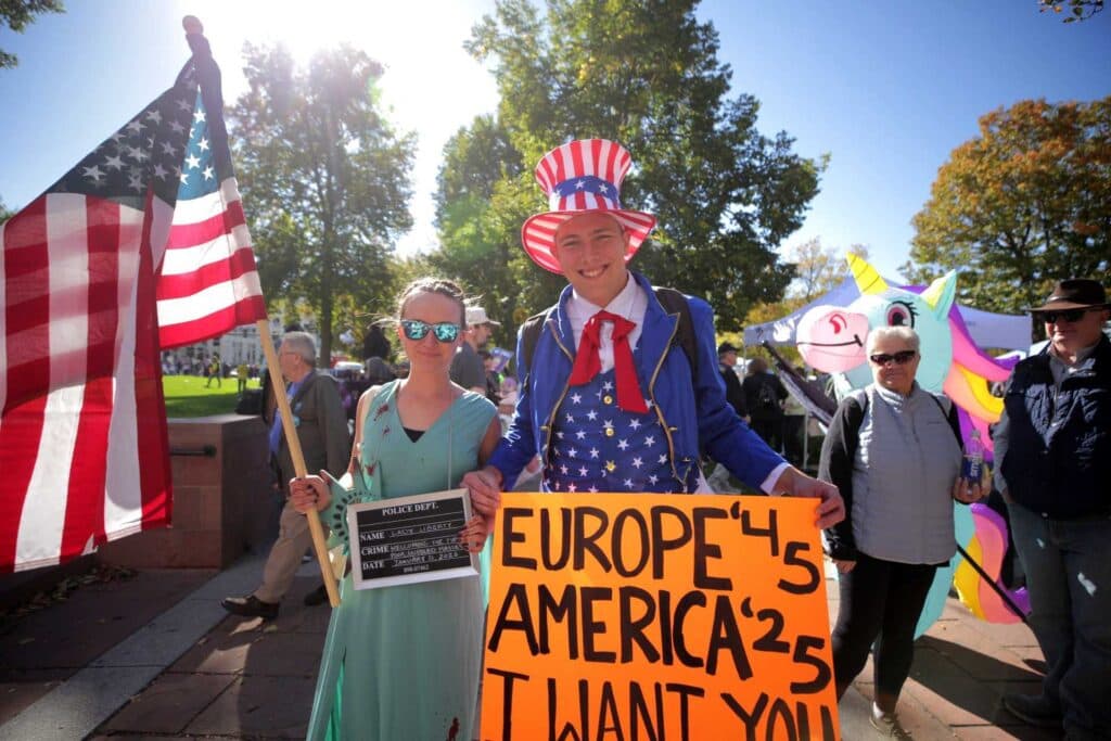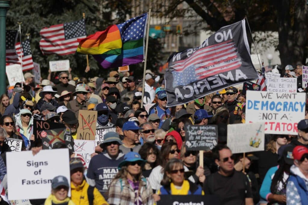 This is the second installment of the “No Kings” protest. The first was in June, when thousands of people gathered throughout the state — and many more across the country.