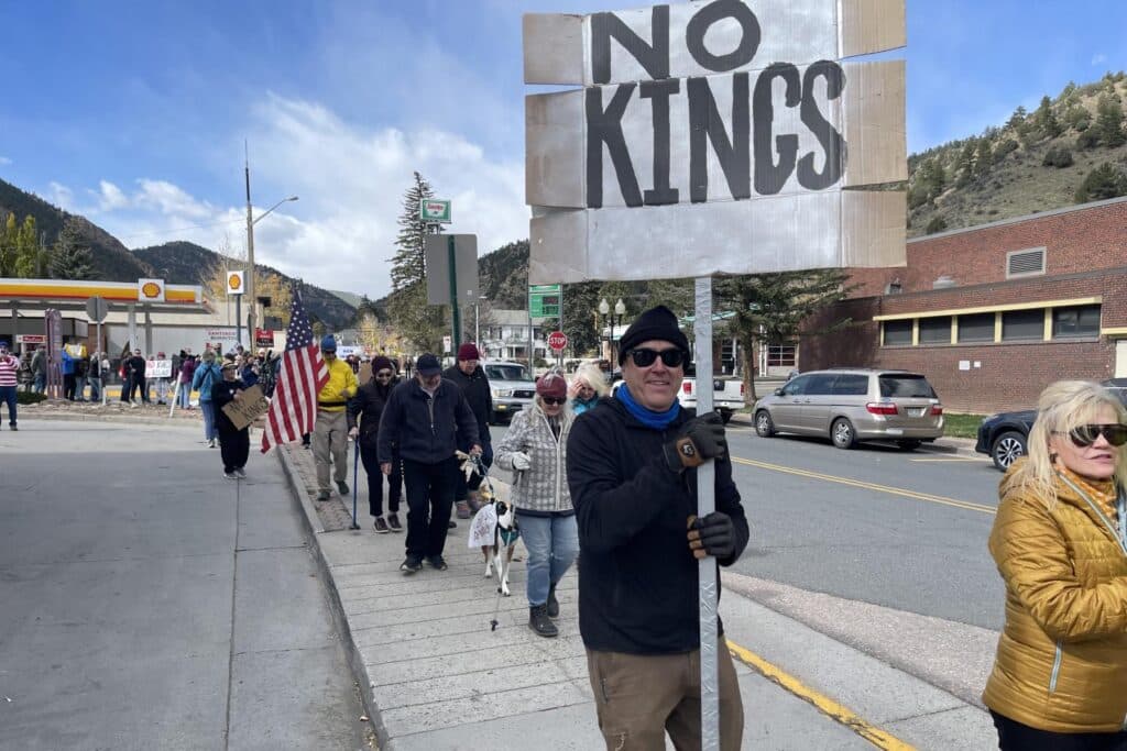 Amid a sunny but crisp morning in Westcliffe, about 150 people were among the first in Colorado to participate in “NO Kings” protests on Saturday.