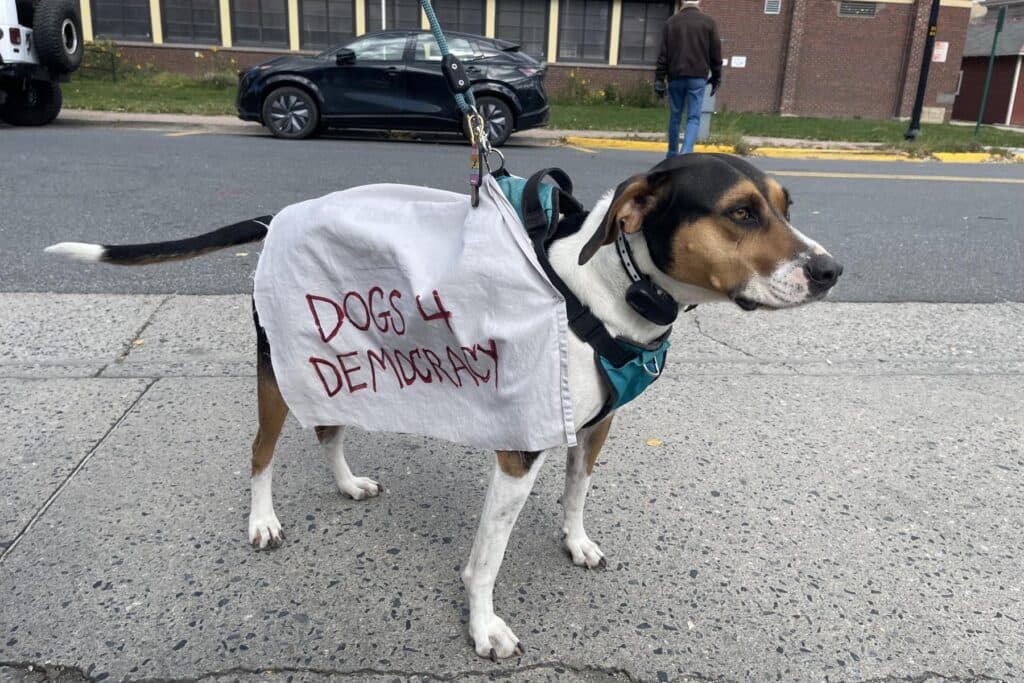 Lisa Kelley came out with her dog and friend to speak out against the administration.