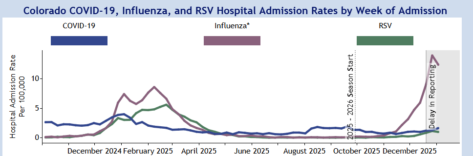 Several factors for the flu spike include a new, rapidly circulating Influenza A variant. And lower vaccination rates. Just about 28 percent of the state's population have gotten a flu shot. That’s lower than other recent seasons, though the gap is closing a bit as more Coloradans are getting vaccinated now.